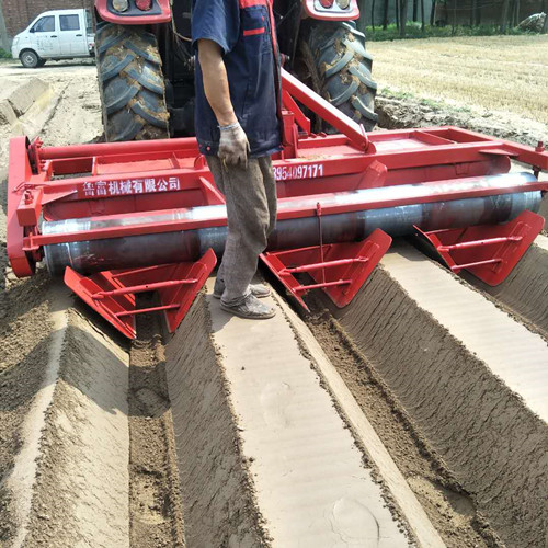 我們公司新研發生產的新款鎮壓開溝起壟機,適用性強,壟面結實,不易坍塌,壓輪作為農田起壟機的核心部件,其構造的科學與否決定了起壟作業的質量高低。如果單純用一塊平板作為壓輪,其起壟效果并非在所有情況下均能保證高質量,譬如,農田中含有較多土塊,亦或,農田中的泥土本身較硬,該類情況下,僅僅以一塊簡單的平板作為壓輪,難以實現較好的開溝起壟效果。