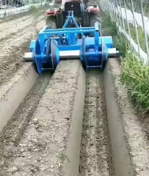 現在大棚草莓多采用南北向高壟種植,壟長7-10米,壟距80-90厘米,不便于草莓起壟機機起壟,通常人工起壟,但是400平米溫室3人工作需要1-2天或更長的時間,且勞動強度相對較大。為了減少種植者工作強度,縮短起壟的時間,我公司專注研發一款草莓專用起壟機機起壟機,改南北向高壟為東西向高壟,壟距90-100厘米,壟高35-40厘米,壟溝寬25-28厘米,壟面寬40厘米。溫室內東西兩側各留1-1.5米的走道。使用草莓起壟機機,草莓壟一次成型,不需人工拍實,熟練工1人完成起壟僅需0.5天。工作效率是人工起壟的10倍以上。 我們一起了解一下小型草莓起壟機機獨特特點。